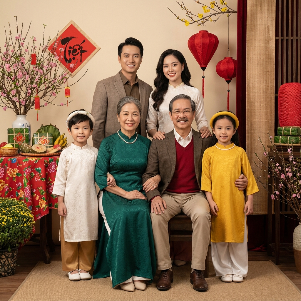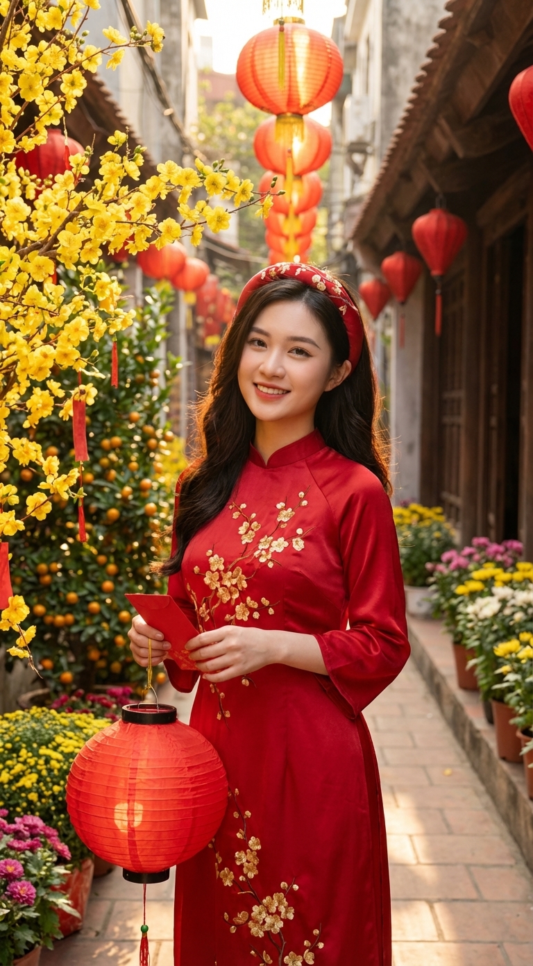 Sử dụng TemplateLưu giữ khoảnh khắc xuân rực rỡ với áo dài, vườn hoa và không khí Tết truyền thống đầy cảm xúc.