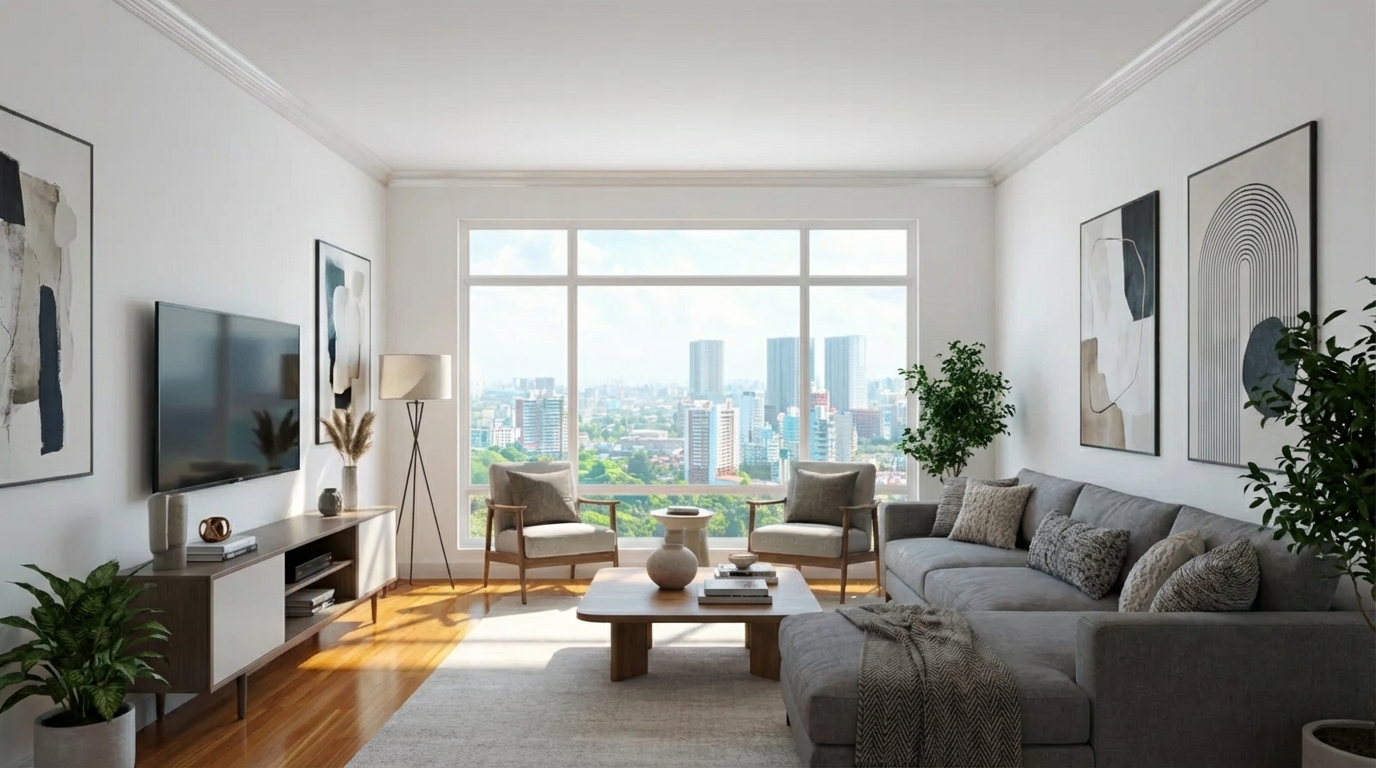 Sử dụng TemplateDàn nội thất ảo, dọn dẹp không gian và nâng cấp ánh sáng chuyên nghiệp cho ảnh nhà đất.